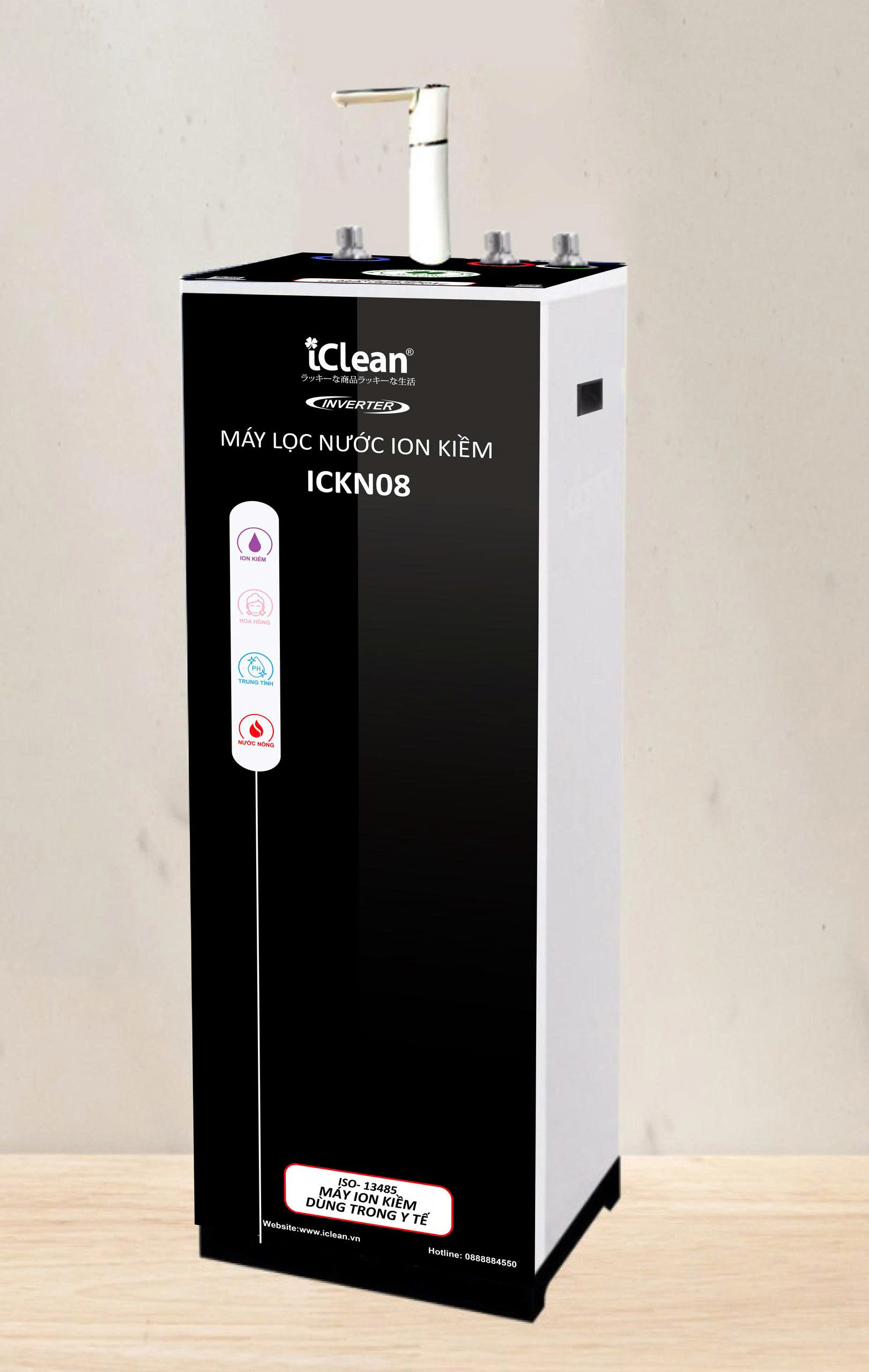 Máy lọc nước kiềm INVERTER ICKN08. Máy ion kiềm duy nhất được chứng nhận dùng trong y tế