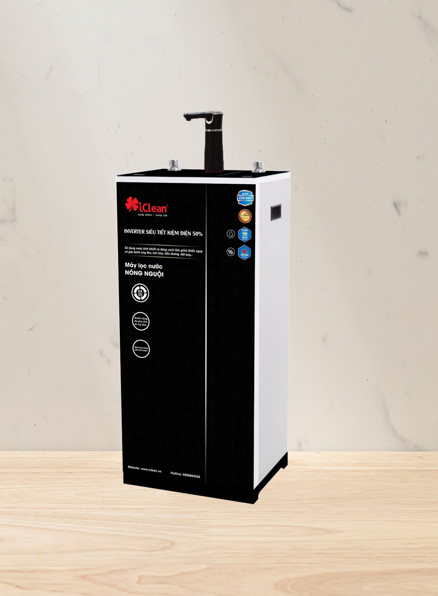 Model ICN04 – Máy lọc nước RO tích hợp nóng nguội tủ thấp truyền thống hiển thị nhiệt độ âm kính: